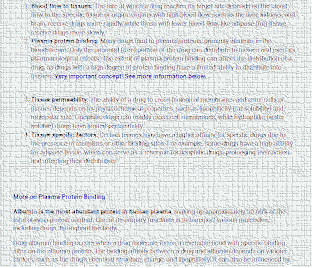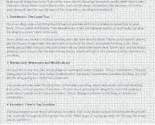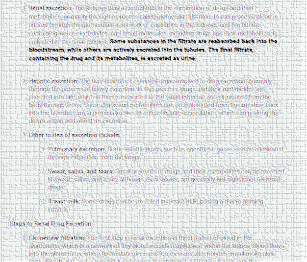 4. Elimination: The efficiency of the body's organs, such as the liver and kidneys, in eliminating a drug can affect its half-life. Factors like renal or hepatic impairment can significantly extend drug half-life.